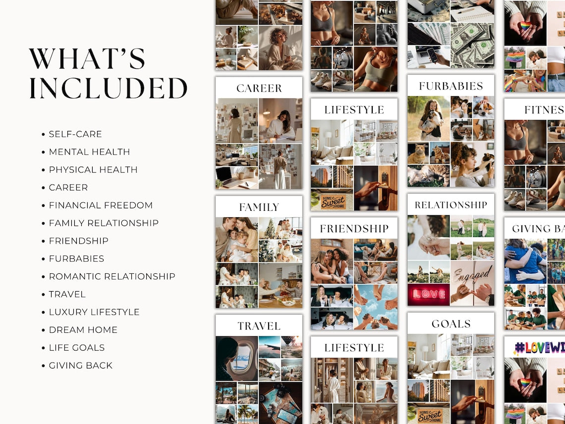 Printable files (PDF / JPG / PNG) ready for physical vision boards