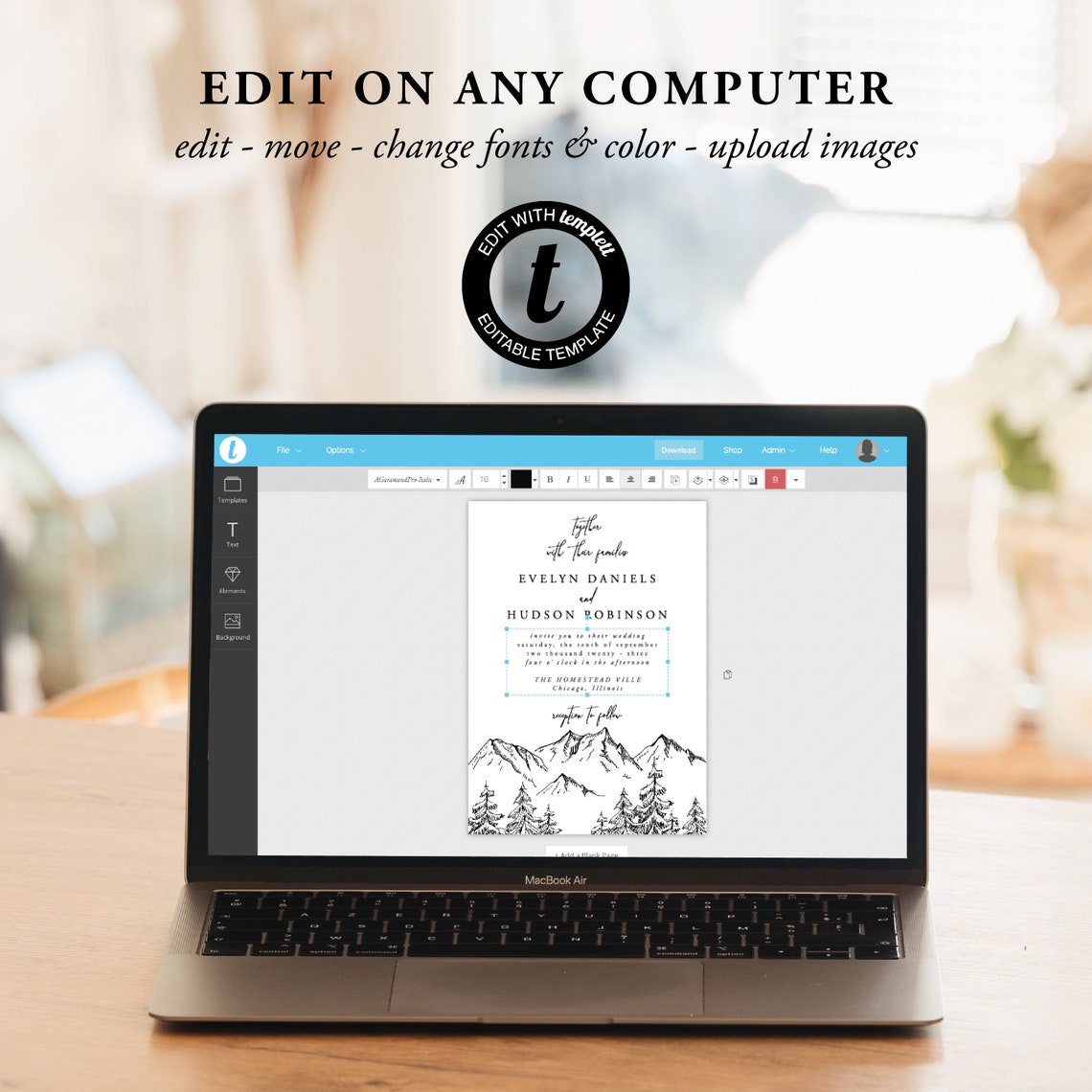 Create elegant and modern place cards for your wedding or event with this minimalist template. Designed in a clean calligraphy style, these cards are fully editable and printable using Templett, making customization simple and fast.