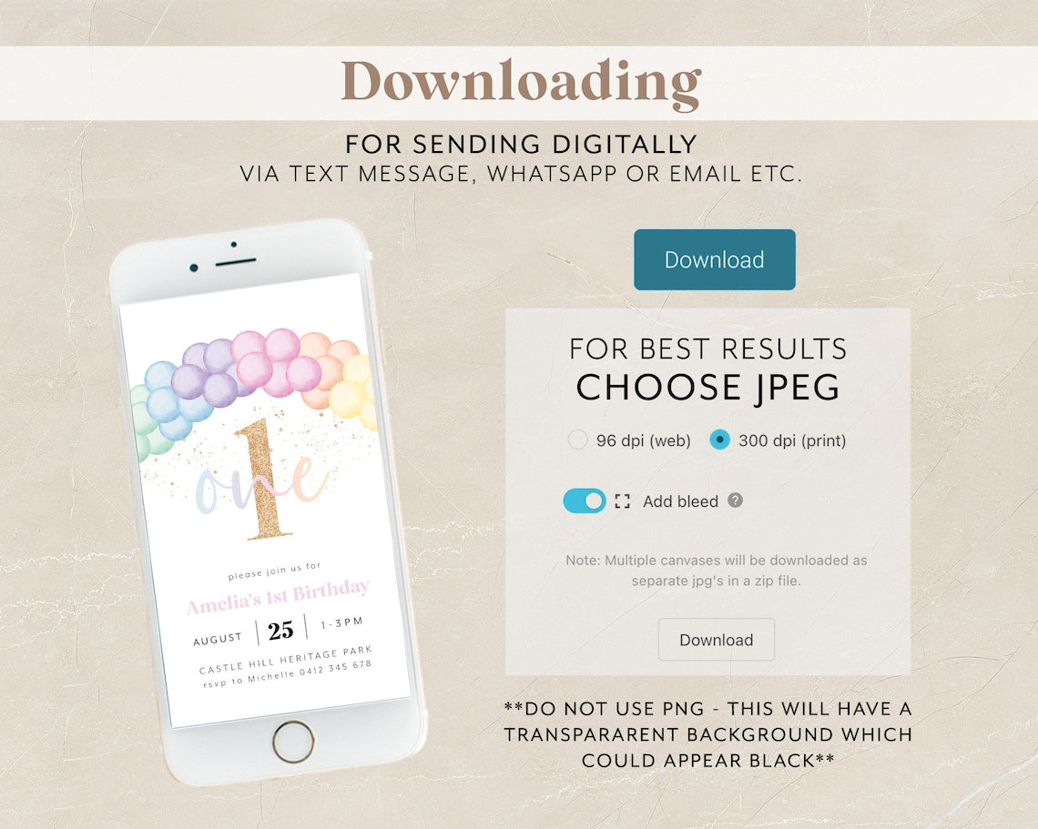 Pastel Rainbow 1st Birthday Invitation – Editable Digital Template